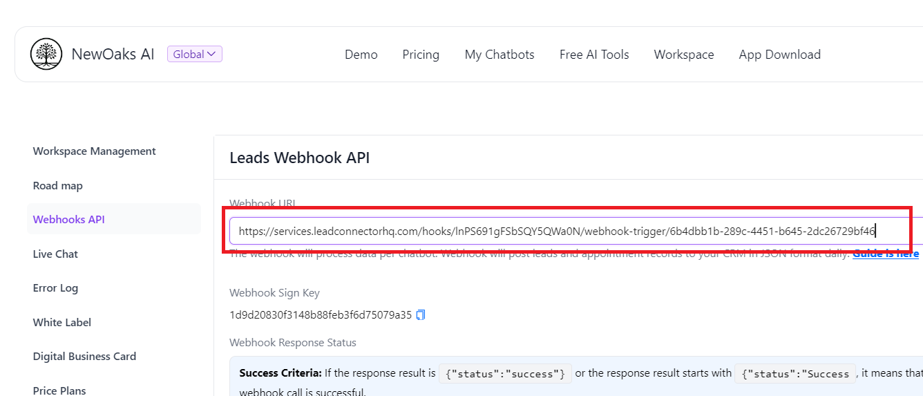 1. Paste Url that copied from GoHighLevel to “Webhook URL” textbox